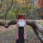 10-14-25 || For Halloween this year, I decided to be a moth! This costume features my first major Tunisian crochet project (Priestess Coat by Morale Fiber), as well as a bark-inspired corset (WhimsiRow) and freehanded moth antennae.