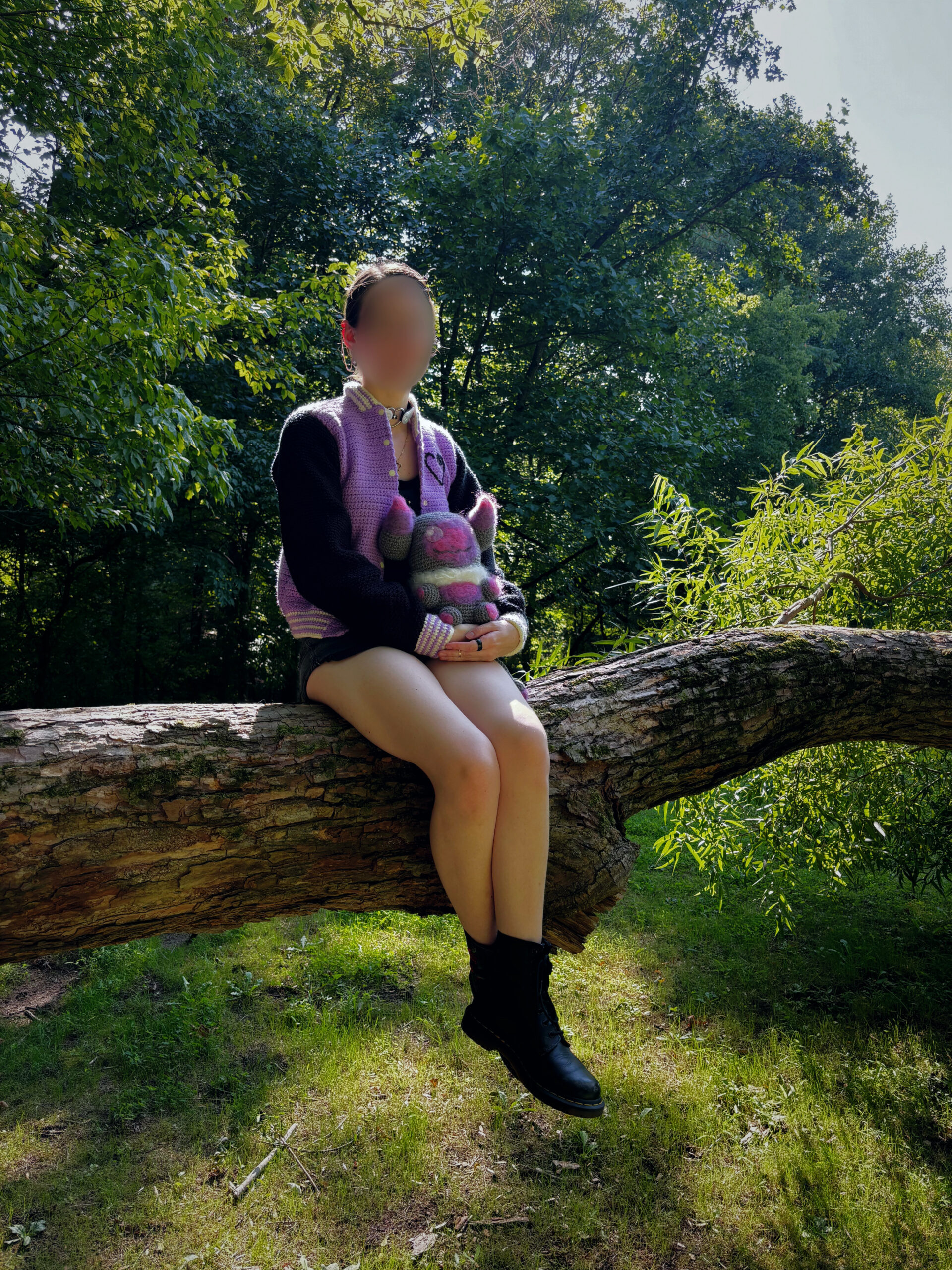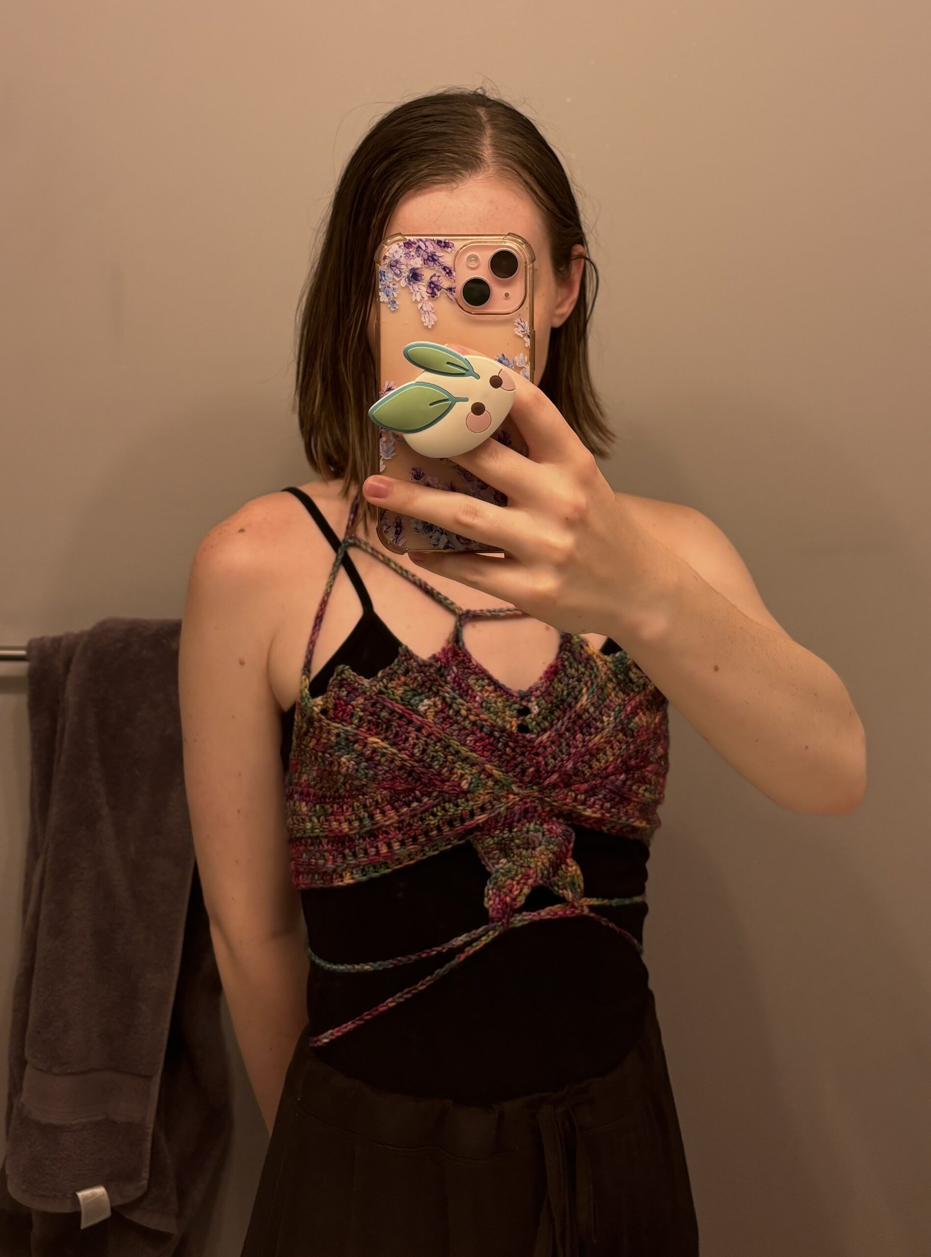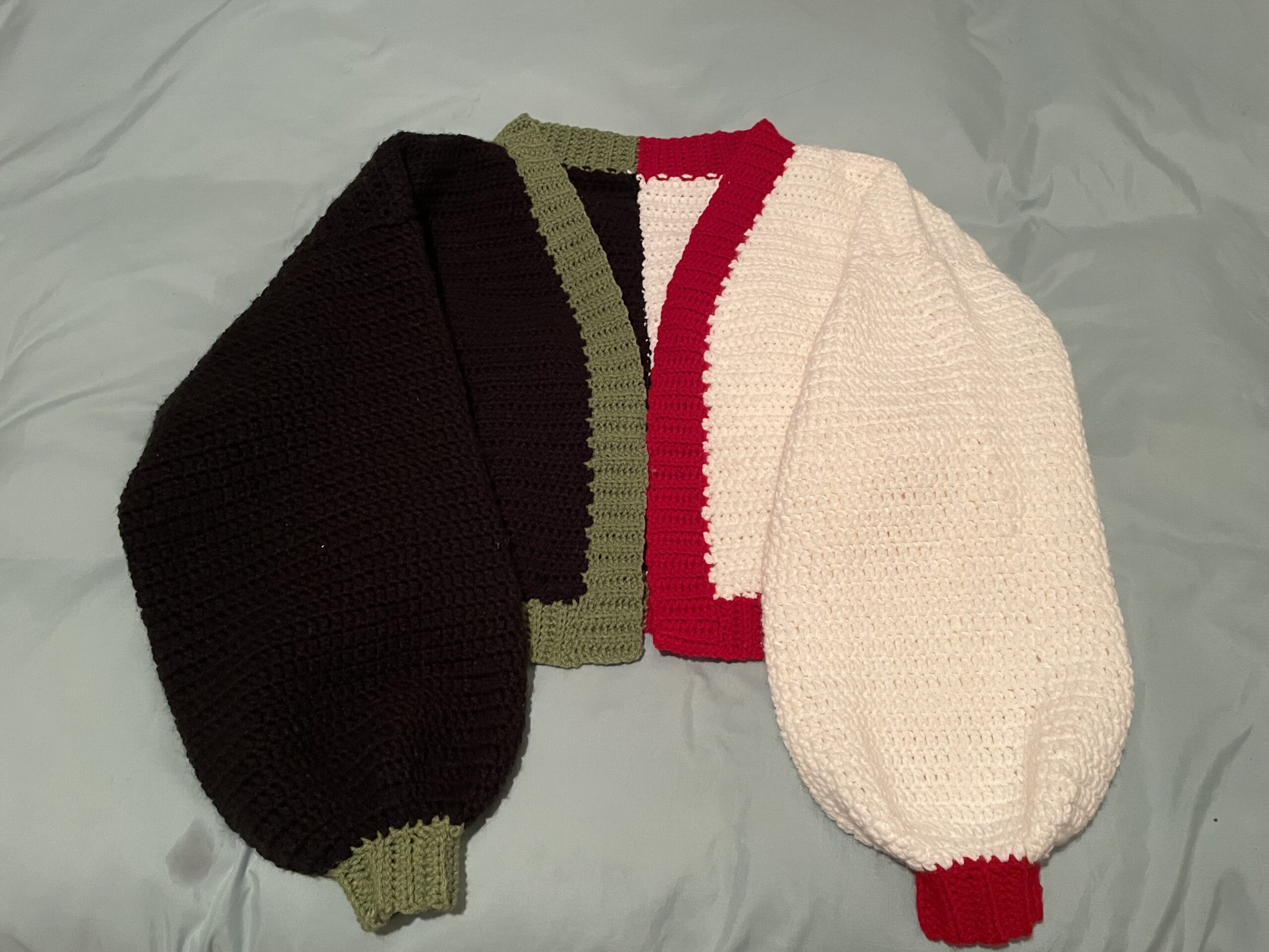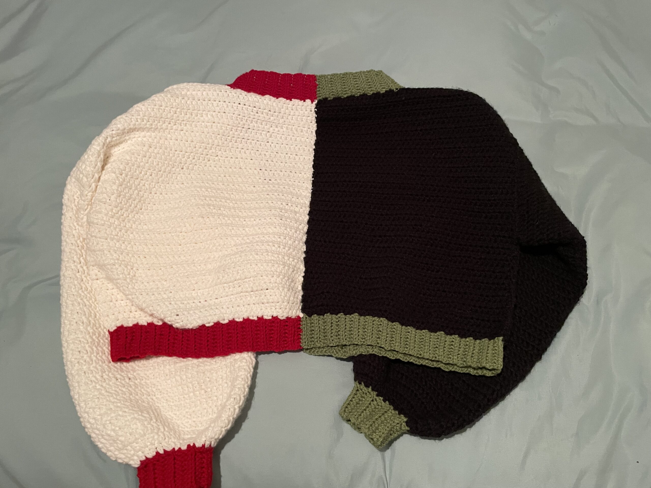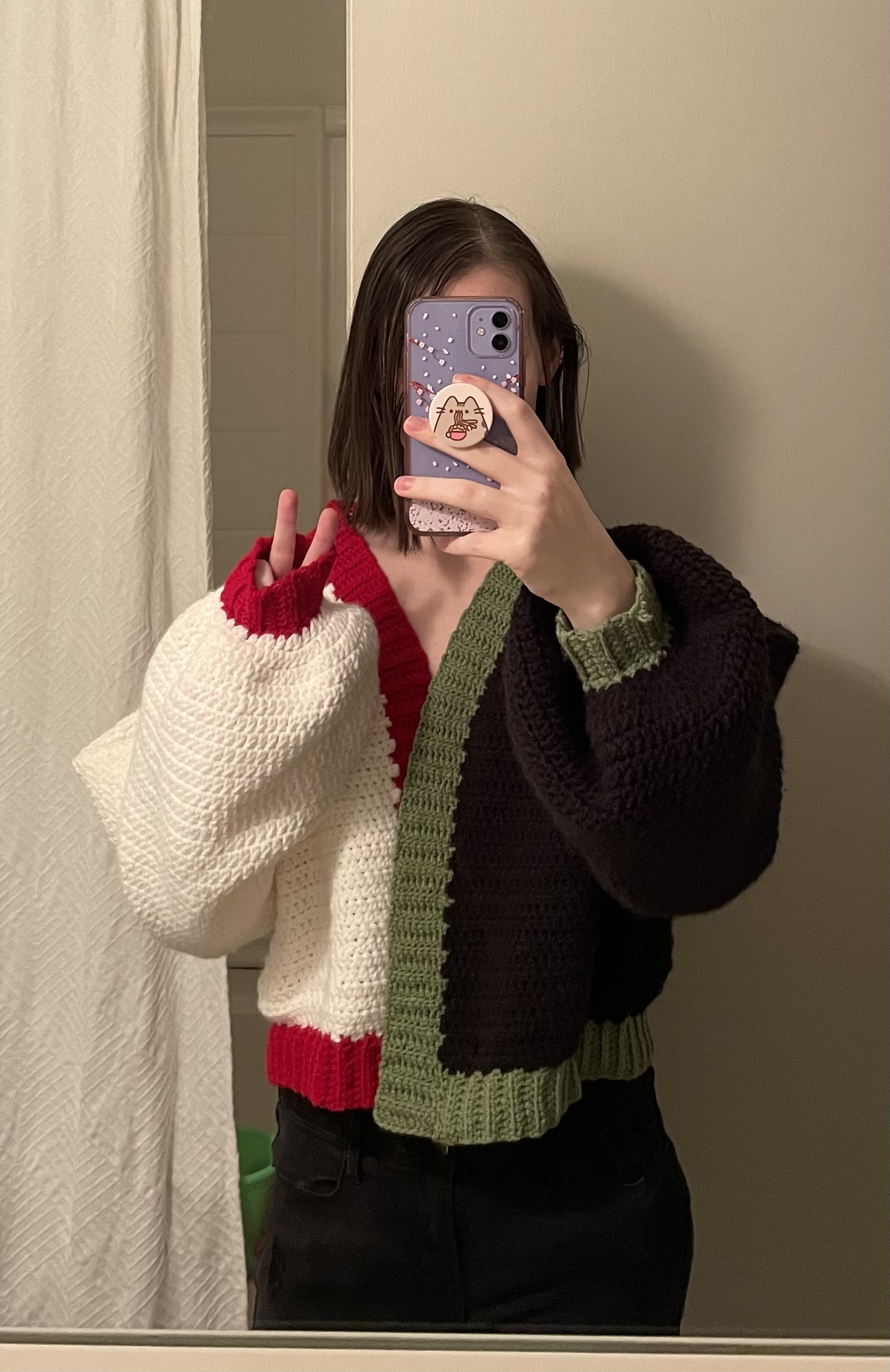 1-18-2022 || My first ever cardigan! Depending on where you started in viewing this portfolio (oldest-upwards or newest-downwards), you may have noticed a pattern with the inspiration for my earlier projects. The content creator Ranboo was my primary hyperfixation back when I was learning to crochet, so they inspired many of my earliest works.